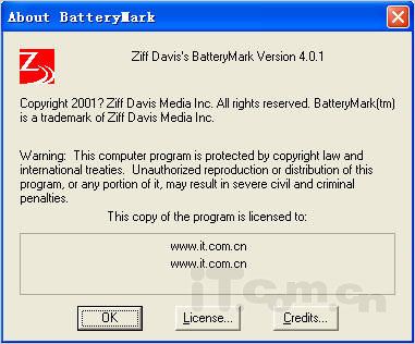 以上所说的都是Windows自带的电源管理程序的设定,对于一些较大的厂商都会有自己专用的电源管理程序,实质基本一样,只要按照上面的原则进行设置就可以了。(当然,上面的设置只是对于媒体评测来说的,至于个人在测试的时候,大可使用厂商本身所配的专用管理程序,对测试所得的电池时间应该会稍微长一点)经过上面一系列设置之后,运行Battery Mark了(开始→程序→Ziff Davis Media BenchMarks→Ziff Davis Media Battery Mark 4.0.1
