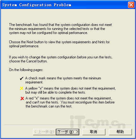 按“下一步”便会显示Battery Mark所谓的最低配置要求。